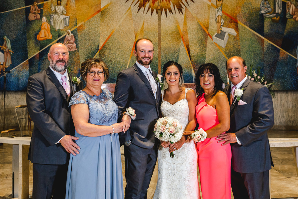 When we took photos of just Dominique and Joe at The Lake Club in Youngstown, Ohio, thankfully there was space great for portraits and that happened to be a few hundred yards from where cocktail hour was taking place. This allowed just the essential team of photographers and videographers to coordinate beautiful portraits with the bride and groom without extra sets of eyes watching.